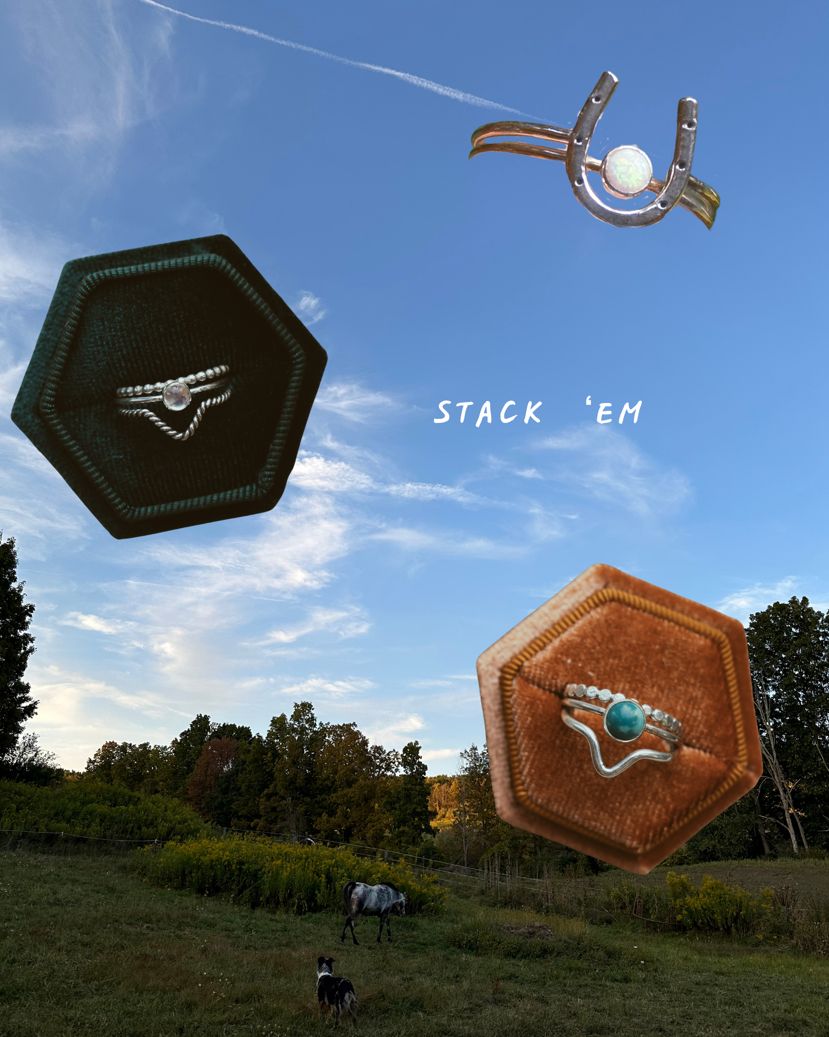 The Tiny Dancer Ring is the perfect stacking piece — pair it with the Journey Stack, any of our other stack rings, or the Lucky Horseshoe Ring to create your own unique combination.