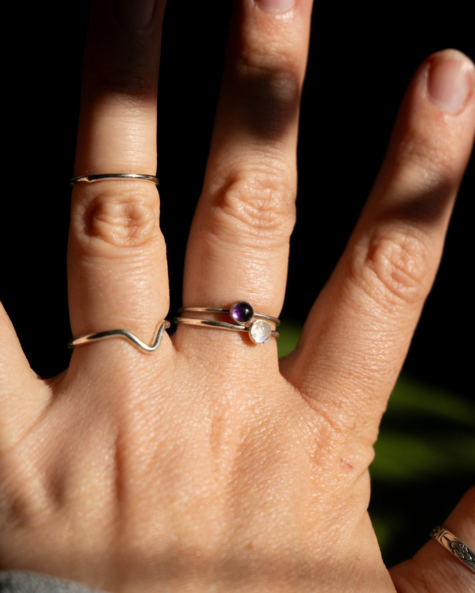 Choose your ring size and stone from the dropdown options. Once preorders close on November 3rd, I’ll order your chosen stones and begin creating your ring by hand. Please allow 4–5 weeks for your piece to be made and shipped — though I’ll do my best to have them in your hands even sooner.